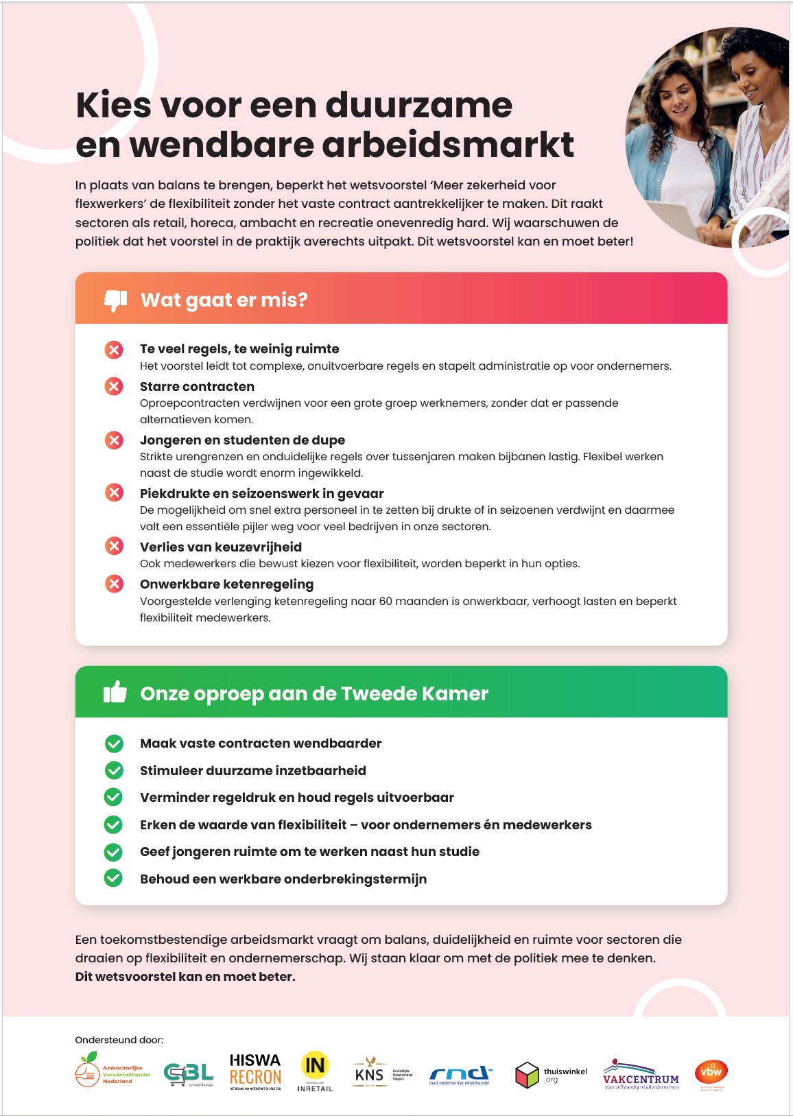 Dringende oproep aan Kamerleden; wijzig wetsvoorstel ‘Meer zekerheid flexwerkers’ voor een goed werkende arbeidsmarkt!